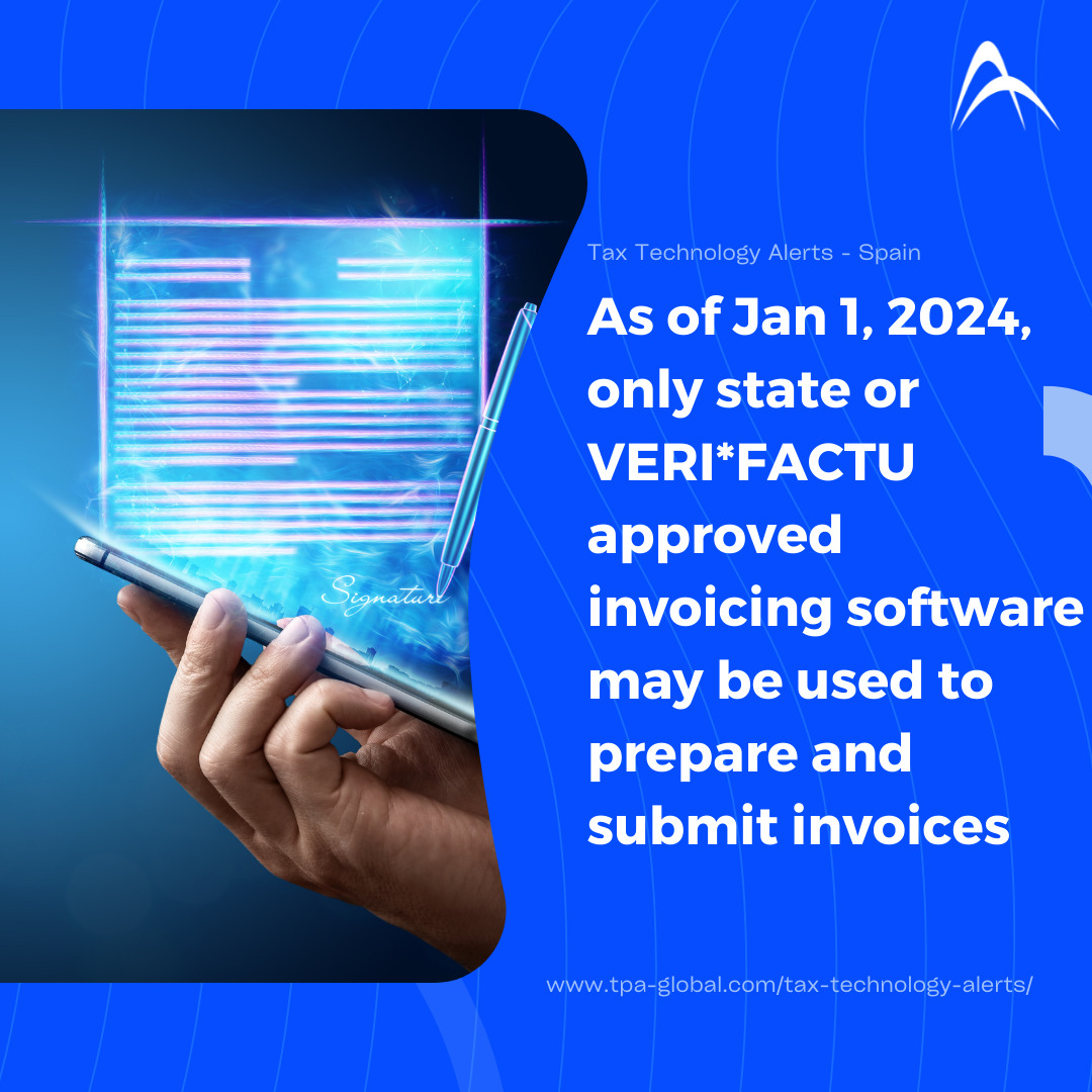 Spain will formalize the rules on invoices and their electronic production, including computerized invoicing, on January 1, 2024. This includes certified invoicing systems and invoice submissions to the Agencia Tributaria on a voluntary basis. When taxpayers use the existing Spanish SII live reporting regime, they may be considered compliant.